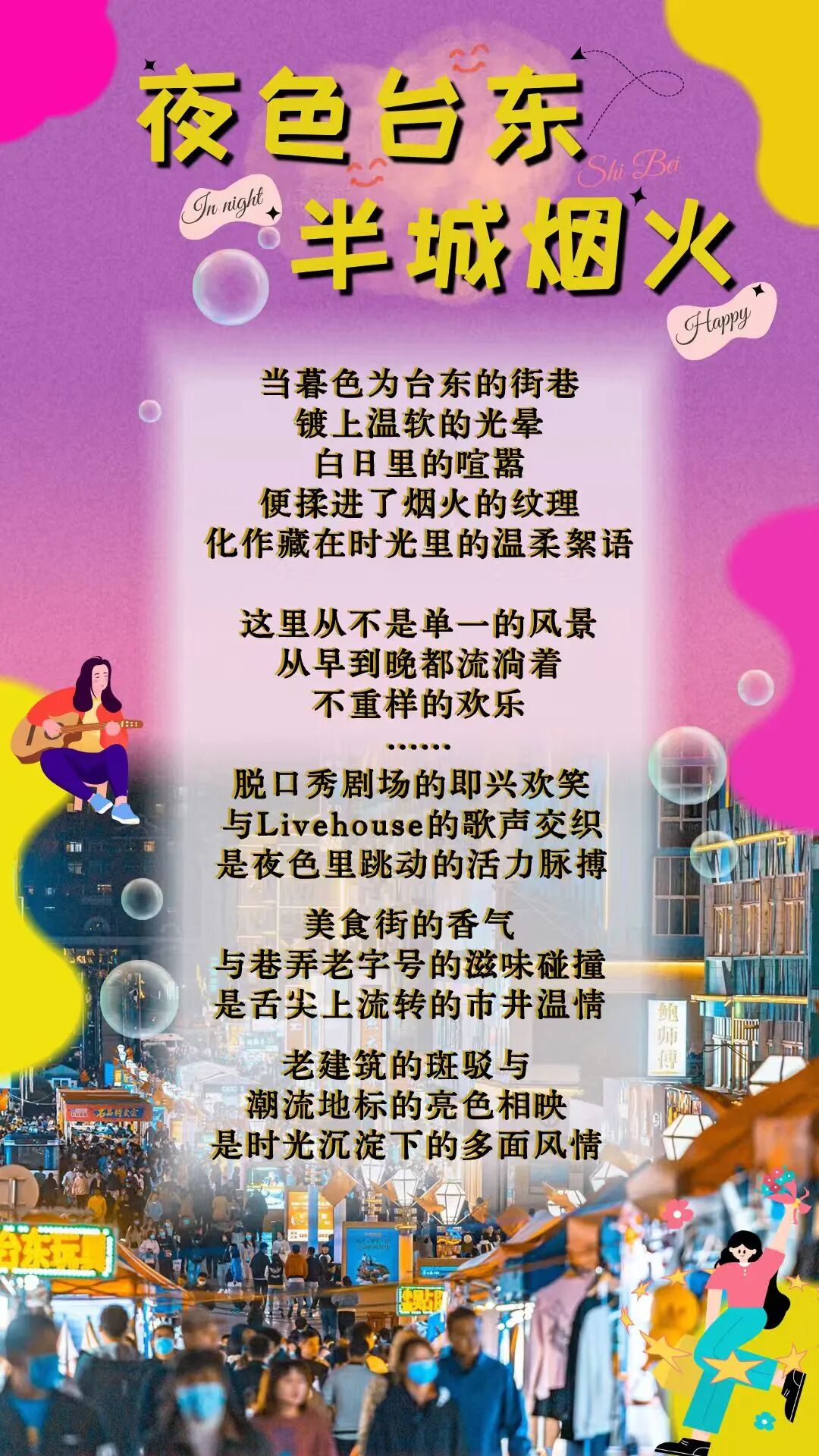 当白日的喧嚣逐渐沉寂,台东的夜色开端泛起微光,半城焰火悄然点亮,只需一夜,你便能罗致这座城最生动的魂灵。