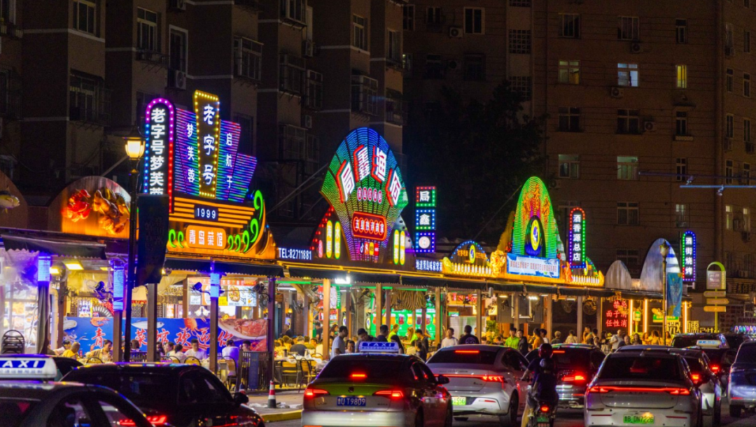 落日为恣儿街的招牌,镀上一层柔光,小贩的吆喝声此伏彼起,像一首贩子交响诗。金丝牛肉饼在油锅里滋滋作响,炸鸡腿的香气霸道地钻进鼻腔,月亮馍里堆满丰富的馅料,大吃特吃过足嘴瘾。